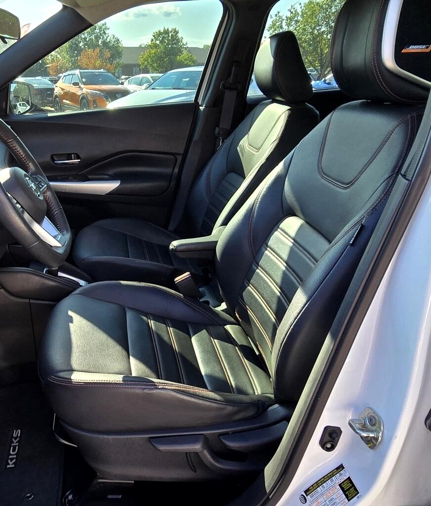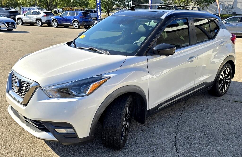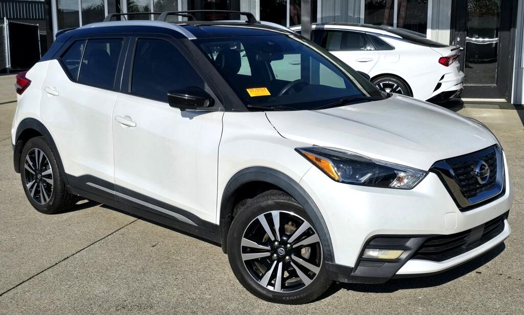 Kicks SR, 4D Sport Utility, 1.6L 4-Cylinder DOHC 16V, CVT with Xtronic, FWD, Aspen White/Super Black, Charcoal Cloth.