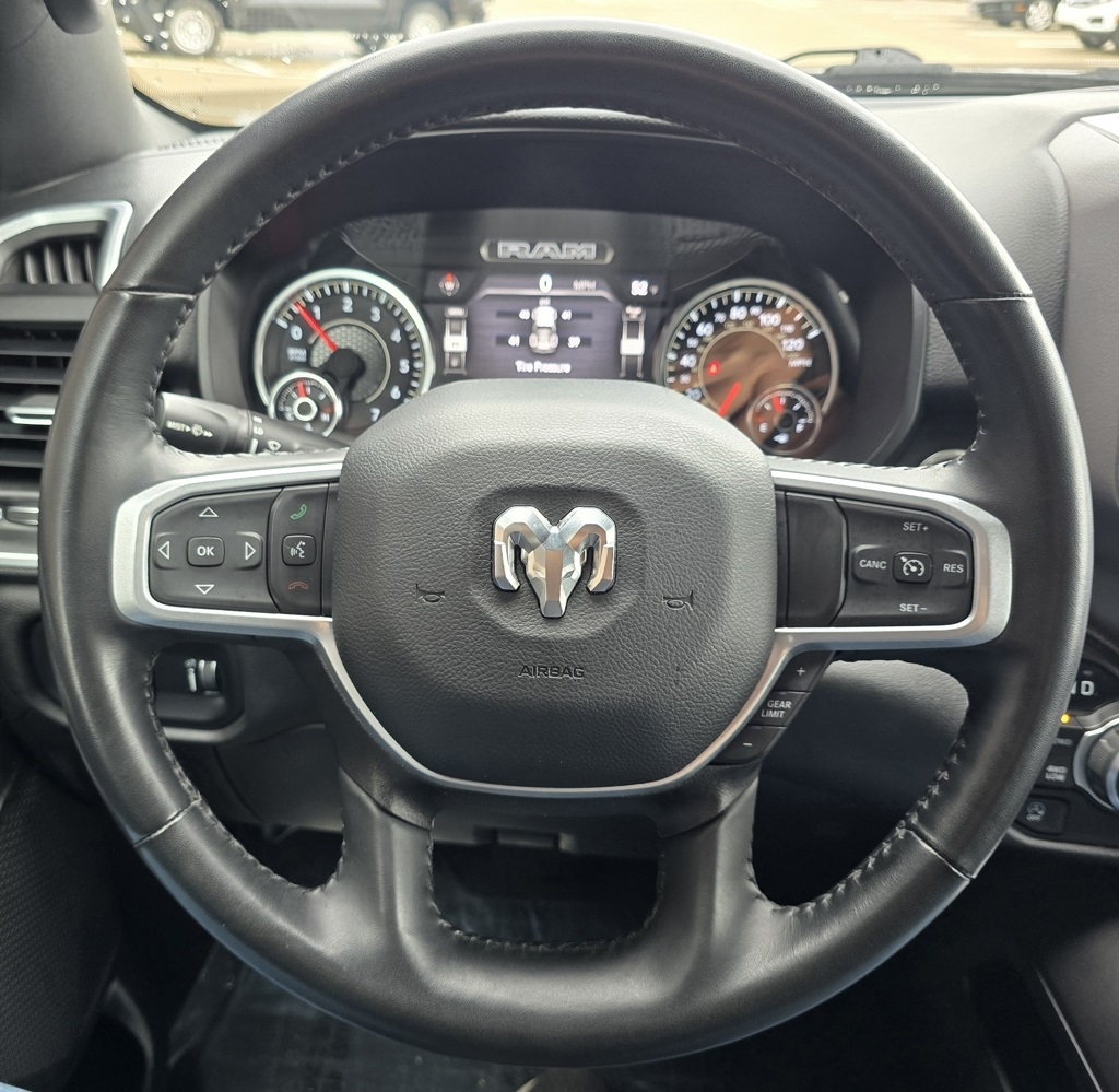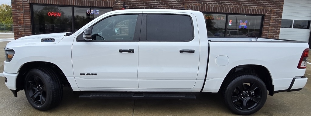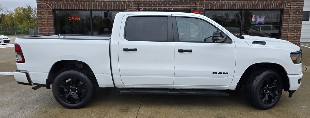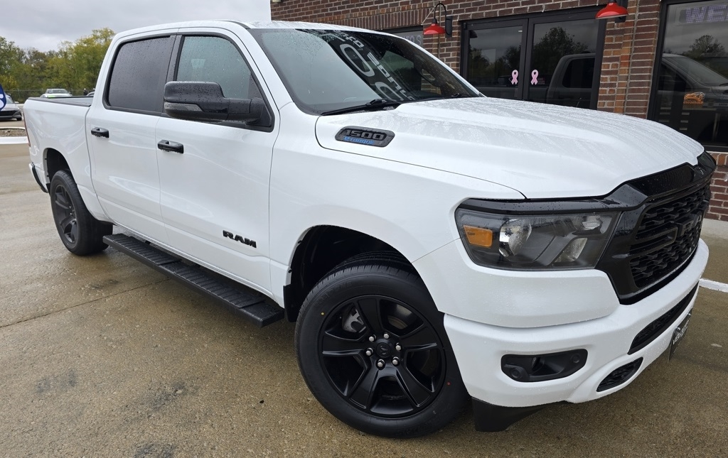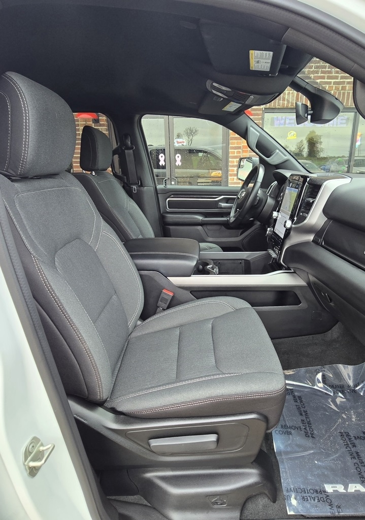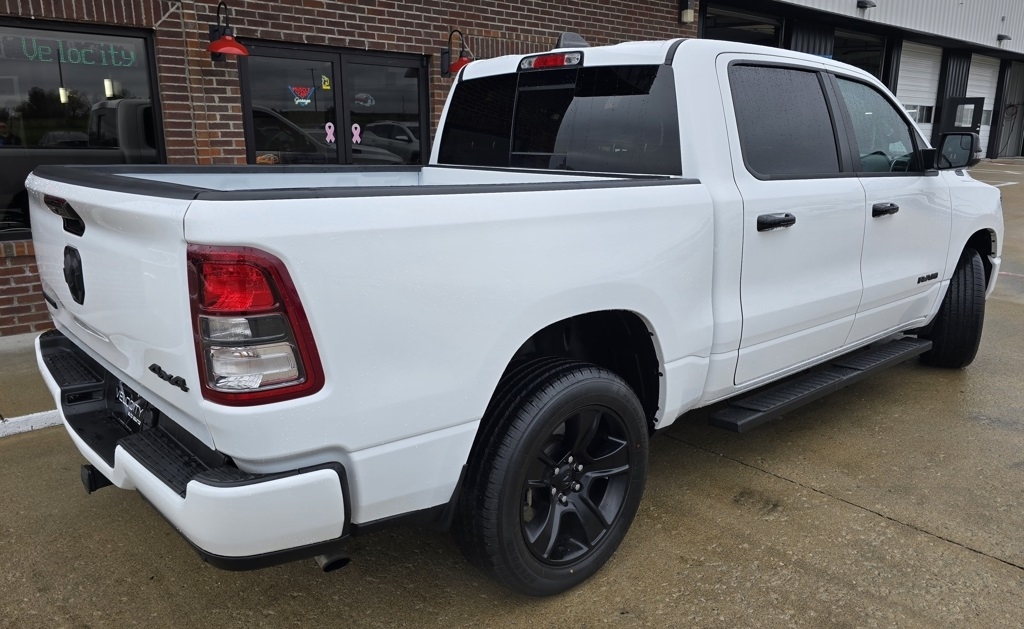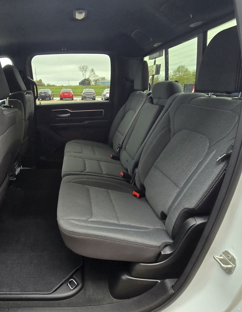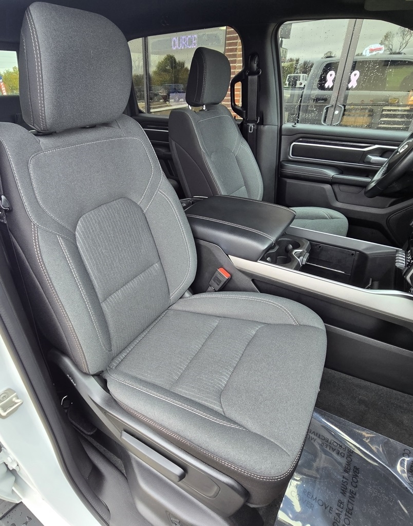 1500 Big Horn/Lone Star, 4D Crew Cab, 3.6L V6 24V VVT, 8-Speed Automatic, 4WD, Bright White Clearcoat, Black w/Cloth High-Back Bucket Seats, 115V Auxiliary Power Outlet, 12" Touchscreen Display, 2nd Row In Floor Storage Bins, 3 Rear Seat Head Restraints, 4 Way Front Headrests, 400W Inverter, 4G LTE Wi-Fi Hot Spot, 9 Amplified Speakers w/Subwoofer, Accent Color Door Handles, Accent Color Premium Power Mirrors, Air Conditioning ATC w/Dual Zone Control, All R1 High Radios, All Radio Equipped Vehicles, Anti-Spin Differential Rear Axle, Apple CarPlay, Auto-Dimming Exterior Driver Mirror, Auto-Dimming Rear-View Mirror, Big Horn Badge, Big Horn Level B Equipment Group, Black Exterior Mirrors, Black Exterior Truck Badging, Black Headlamp Bezels, Black Interior Accents, Black Painted Exterior Mirrors Caps, Black Premium Power Mirrors, Body Color Front Bumper, Body Color Rear Bumper w/Step Pads, Bucket Seats, Center Console Parts Module, Class IV Receiver Hitch, Cluster 7.0" TFT Color Display, Connected Travel & Traffic Services, Connectivity - US/Canada, Convex Wide-Angle Exterior Mirror Insert, Deluxe Cloth Bucket Seats, Disassociated Touchscreen Display, Dual Exhaust w/Black Tips, Exterior Mirrors Courtesy Lamps, Exterior Mirrors w/Heating Element, Exterior Mirrors w/Supplemental Signals, For Details, Visit DriveUconnect.com, For More Info, Call 800-643-2112, Front Fog Lamps, Front Seat Back Map Pockets, Full Length Floor Console, Global Telematics Box Module (TBM), Glove Box Lamp, Google Android Auto, GPS Antenna Input, GPS Navigation, HD Radio, Heated Front Seats, Heated Steering Wheel, Integrated Center Stack Radio, Integrated Voice Command w/Bluetooth, LED Footwell Lighting, Manual Adjust 4-Way Front Passenger Seat, Media Hub w/2 Charge Only USBs, Navigation System, Night Edition, ParkSense Front/Rear Park Assist w/Stop, Power 2-Way Driver Lumbar Adjust, Power 8-Way Driver Seat, Power Adjustable Pedals, Power-Folding Mirrors, Quick Order Package 23Z Big Horn, Radio: Uconnect 5 Nav w/12.0" Display, RAM Grille Badge - Black, Rear 60/40 Folding Seat, Rear Center Armrest, Rear Dome w/On/Off Switch Lamp, Rear Power Sliding Window, Rear Window Defroster, Remote Start System, Security Alarm, SiriusXM Radio Service, SiriusXM Satellite Radio, SiriusXM w/360L, Sun Visors w/Illuminated Vanity Mirrors, Universal Garage Door Opener, USB Host Flip, Wheels: 20" x 9.0" Premium Paint/Polished.