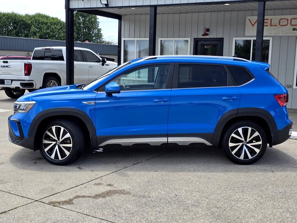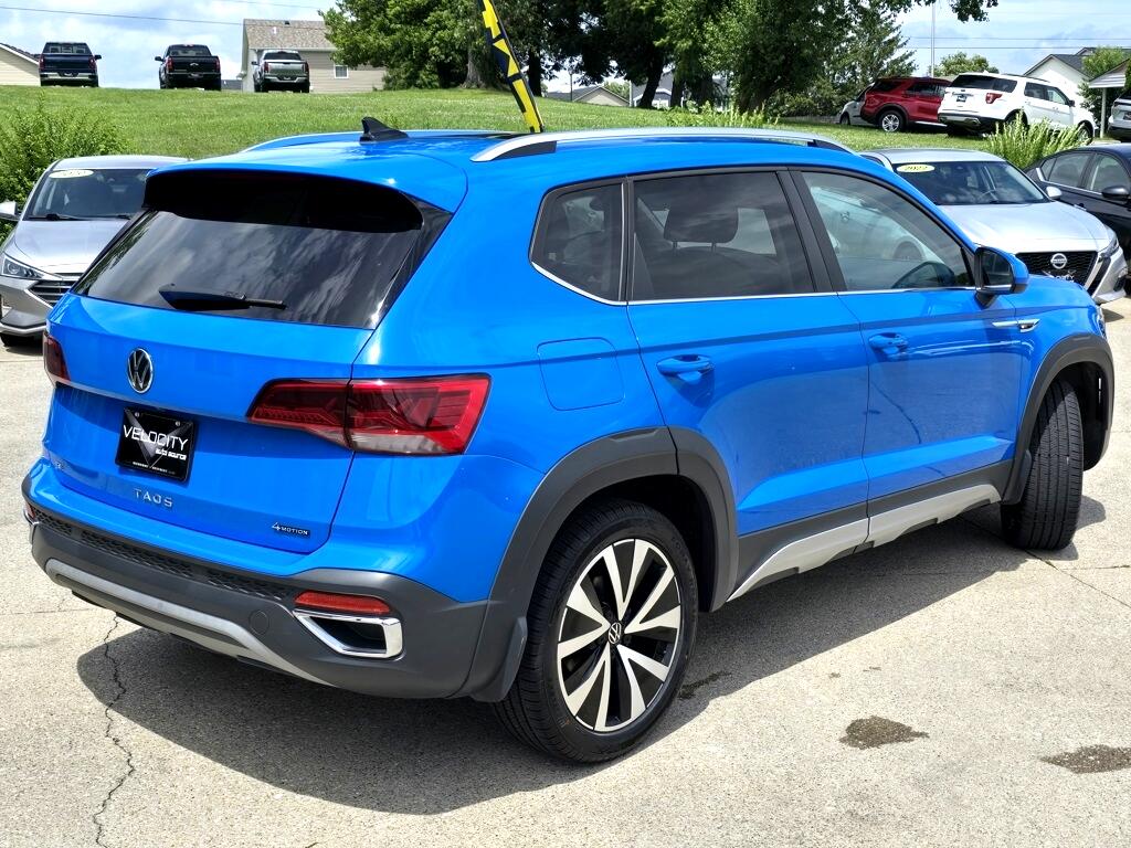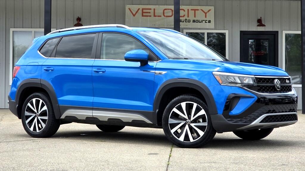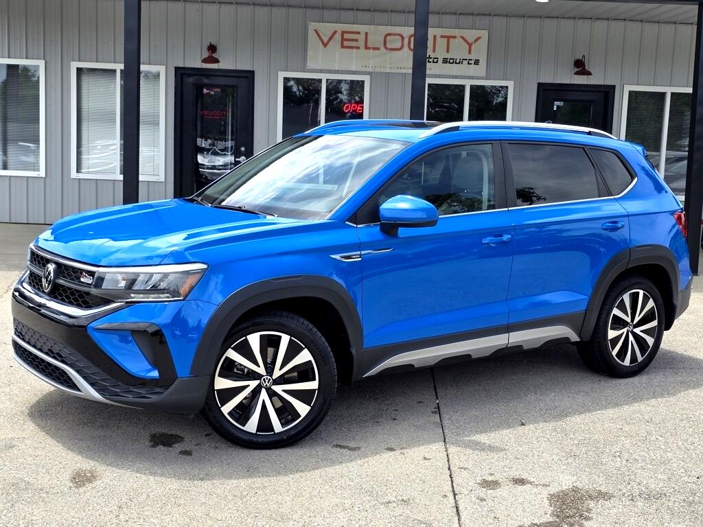 Taos 1.5T SE, 4D Sport Utility, 1.5L I4 Turbocharged DOHC 16V LEV3-SULEV30 158hp, 7-Speed DSG Automatic with Tiptronic, AWD, Cornflower Blue, Gray/Black w/Perforated Vienna Leather Seating Surfaces.